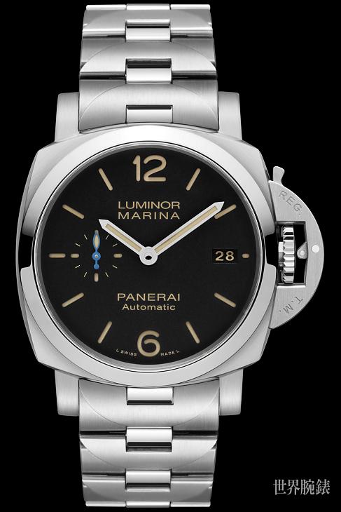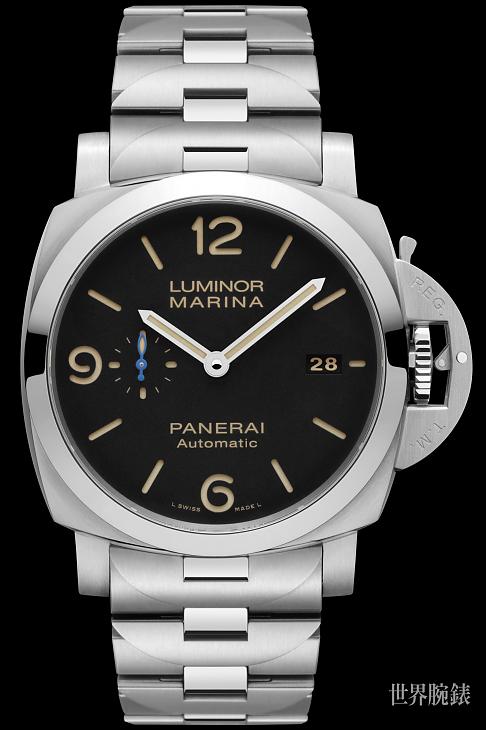 ▲沛納海全新Luminor Marina 1950 3日鍊自動錶以黑色面盤搭配鋼鍊錶帶,打造出全新面貌。