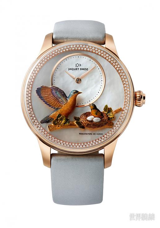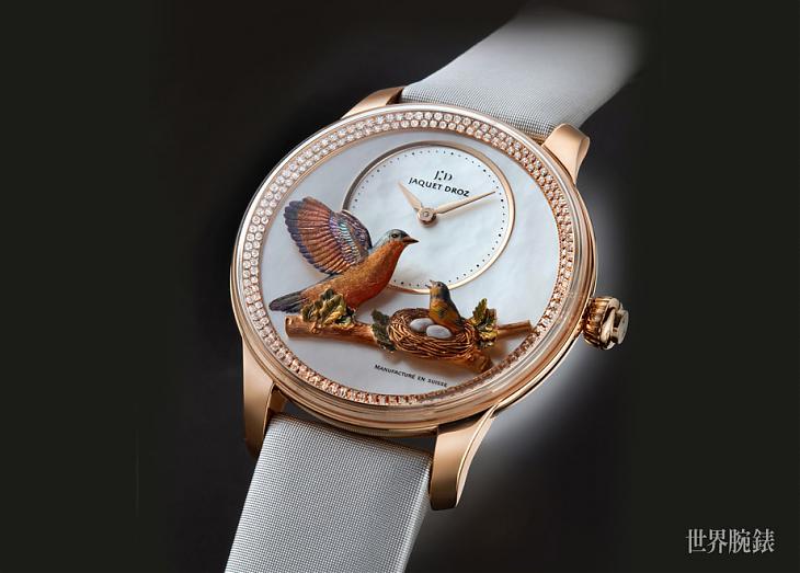 ▲雅克德羅一向以精湛的裝飾工藝技法聞名錶壇,如在金雕工藝部分常見結合品牌特色的雀鳥主題,將靈動的鳥兒身影栩栩如生呈現於面盤之上。