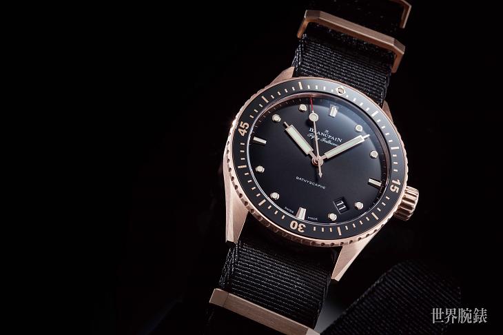 Fifty Fathoms Bathyscaphe自推出以後在材質上的應用相對多元,除了鈦金屬以及這兩年品牌熱衷在調色上做變化的陶瓷材質以外,也有像這款採用貴金屬等級的高級版,雖然運動錶出K金款多少有些與實用價值背道而馳,但近年來運動錶正裝化的趨向倒也助長了這類產品的人氣,對於喜歡運動錶外型,但又想要在更正式場合也能佩戴同款錶需求的人士而言,這種類型的款式無疑是個不錯的折衷,只是付出的代價當然也會更高。