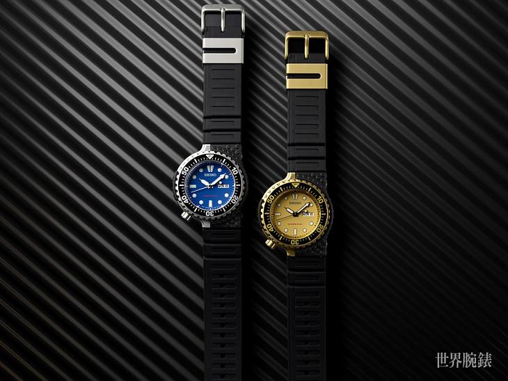 近期SEIKO Prospex與GIUGIARO Designn推出兩款不同色系的限量復刻潛水錶款,其設計靈感來自於雙方1980年代攜手推出的聯名潛水錶款,包含錶款特有的外層保護圈、錶帶形狀與面盤顏色,皆以錶款原型設計為基礎。此外,錶款獨特重心向左偏移的不對稱設計,是為了不妨礙使用者潛水時的手腕活動,而固定於錶款側邊的橡膠錶帶的保護裝置,不僅可以減低機芯的衝擊力,也讓使用者更方便透過轉動錶圈設定潛水時間。塗有明亮的夜光材料時分秒針,與醒目粗字體的夜光時標互相呼應,錶款可深潛至200米。
