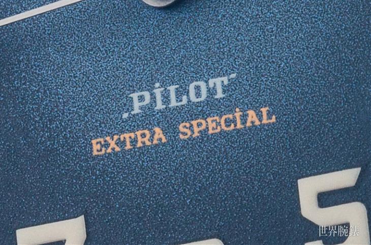 採用細粒紋裝飾增添了面盤本身的陽剛況味,細粒的質感在拉近距離欣賞面盤時,可以看到有點漸層的色澤變化,這在Pilot系列這次一口氣推出四種鮮豔色澤的面盤來說可說是特別有感,因為稍微轉換一個角度就可以欣賞到綿密的色彩變化,尤其這次所介紹的藍面,更是與市場上的藍面腕錶有著質感上的差異,市場上常見的藍面多半是做滑面的太陽放射紋,而這次的Pilot Type 20 Extra Special,因為本身飛行錶血統使然,所以是以這種細粒紋裝飾,更是在隱約之間點綴出飛行錶該有的粗獷味道,非常吸引人。