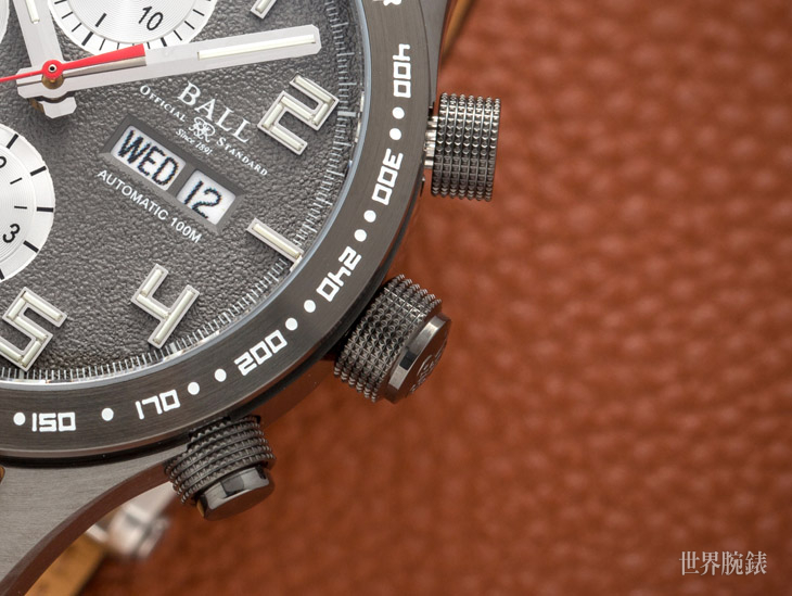 波爾錶具備專利的自體發光微型氣燈(3H)技術,出色的夜光表現早已無庸置疑,而此次Fireman Storm Chaser DLC Glow II 腕錶面盤可見波爾錶將棒型時標改成阿拉伯數字時標,並賦予39支自體發光微型氣燈於表面。與上一代相比,夜光特色就十分充沛的表現下,換上數字時標後無疑提升了光線有限環境下閱時的便利性。豐富的日常功能像是日期和星期顯示功能同樣沿用至全新款式中,繼續安置在三點鐘位置。此外波爾錶為面盤進行了特殊處理,讓灰面呈現類似隕石面盤的細節調整突顯風沙漫天的逐風景象,大膽採用淡灰色,更選用磨砂效果,別具質感面盤整體設計碰撞出的層次感讓人驚豔。