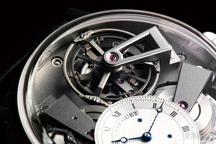 寶璣於2006年就發表包括游絲、擒縱輪和擒縱叉的全套矽擒縱,但當時的矽游絲是在整片矽材料直接蝕刻出螺旋狀的游絲,而寶璣游絲的立體曲線是以手工折成的,如果想要以矽材質做出寶璣游絲勢必不可能使用傳統的工法。為此寶璣研發4年,以特殊的接續技術做出有寶璣曲線的矽游絲。另外Tradition碩大的陀飛輪也使用鈦材質製作擺輪與框架來減輕重量,並使用鈦金屬製作機芯基板與夾板保持三問樂音音質純淨。