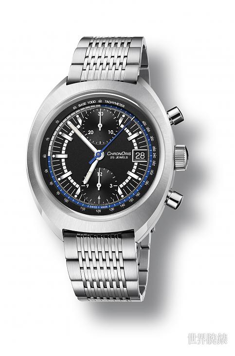 2017年,Williams車隊慶祝其第一次在1977年西班牙大獎賽上獲勝的四十週年。為紀念這個歷史性的時刻和車隊創始人Frank先生的非凡成就,ORIS特別打造Chronoris限量錶以表慶祝。這只Chronoris限量錶,其40毫米的不鏽鋼錶殼有著引人注意的流線型,這也是向初代Chronoris致敬。實際上,第一代的Chronoris限量錶是在1970年推出,同時它也是ORIS第一款計時碼錶。如今推出的改版40週年紀念限量錶也延續了第一代Chronoris的外型特色。而OIRS的設計師們也將Williams車隊的元素融入到Chronoris限量錶中,例如Chronoris限量錶面盤上的中央計時秒針和分鐘刻度都是採用代表Williams車隊的藍色,腕錶底蓋也刻有Williams車隊標誌的浮雕。此外,這只腕錶全球限量1,000只,它可搭配棕色皮革錶帶或黑色橡膠錶帶或金屬鍊帶。