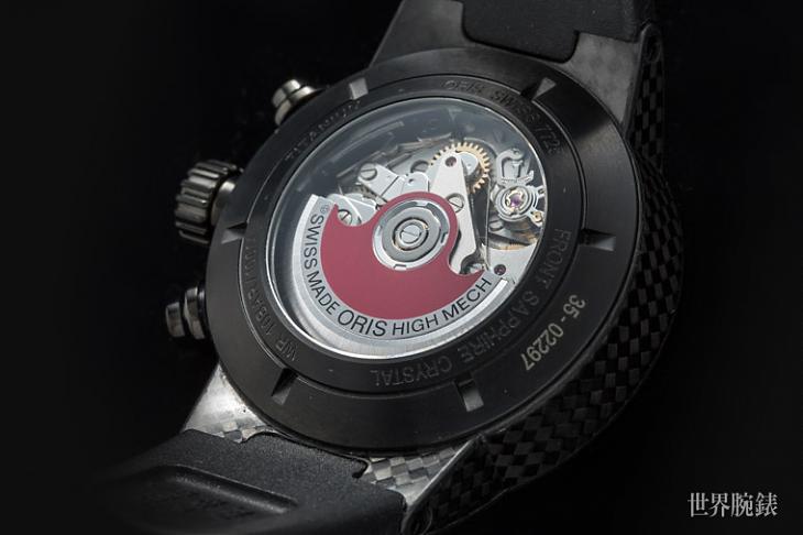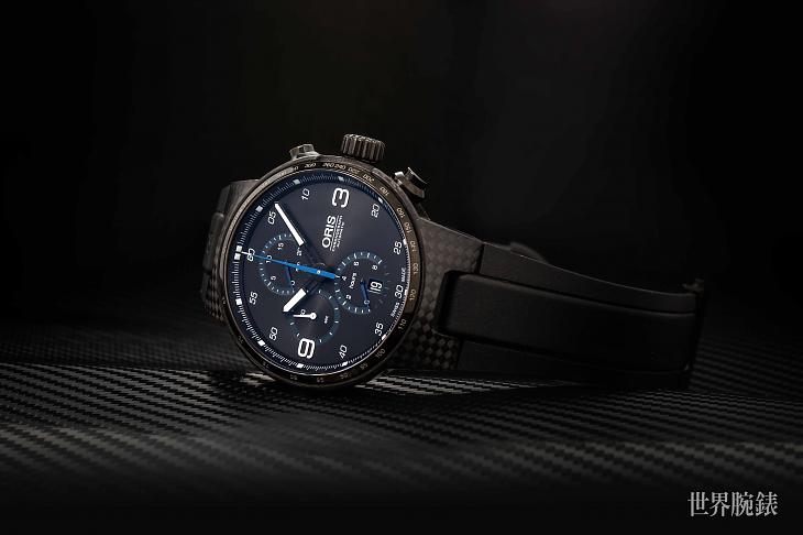 鈦合金、碳纖維材質/Oris 674自動上鍊機芯/時、分、小秒、日期顯示/計時碼錶功能/藍寶石水晶鏡面、透明底蓋/防水100米/錶徑44mm/限量770只/參考價:NT$ 135,000