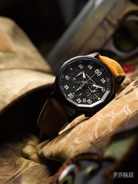 灰色PVD不鏽鋼材質/CO 984自動上鍊機芯/時、分、小秒、日期顯示/計時碼錶功能/藍寶石水晶鏡面、透明底蓋/防水30米/錶徑42mm/參考價:NT$ 275,000