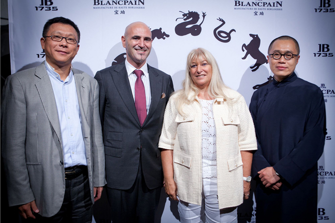 ▲書法家Mr Lee、BLANCPAIN總裁Mr. Hayek、Swatch 集團董事會主席Mrs Hayek、哲學家Mr Man Tao
