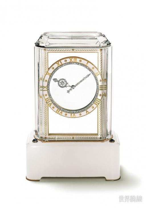 ▲卡地亞於1914年開發了一款名為Model A的神祕鐘作品,鐘身以及鐘面大部份皆為透明,只有框架以及刻度環上點綴如琺瑯、月桂葉圖案與美鑽等裝飾,透過藍寶石圓盤夾附指針的巧妙設計,使得指針猶如懸浮在鐘面上讓人感到不可思議。