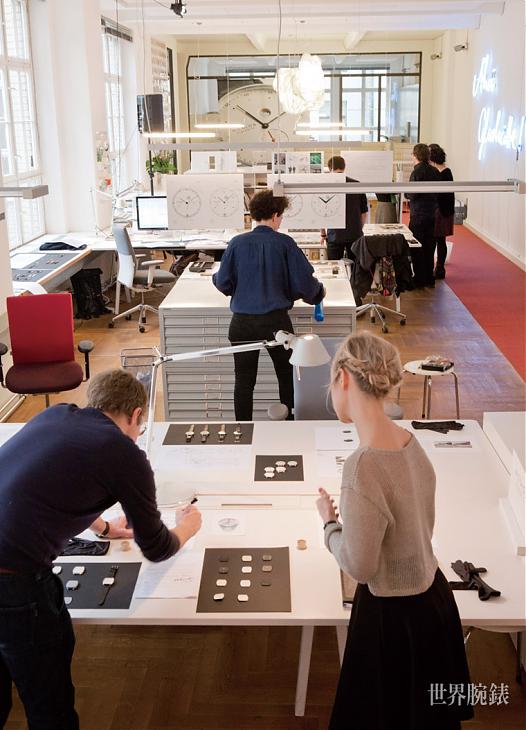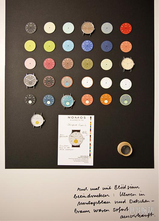 NOMOS腕錶的創作過程,包含錶殼模型製作、錶款面盤設計、細節調整與成品製作等,最後待一切確認,才會由格拉蘇蒂的兩座錶廠進行量產。這段期間,無論是錶殼的石膏模型,或者是各款式面盤的設計,設計師們都耗費極大心力、呈現出數量驚人的成果。而這些成果,不管最後是否成功獲選為實品設計,最後全都會由Berlinerblau創意部門收藏,各式各樣的設計作品琳瑯滿目,於部門工作室中一字排開,可以看到單就面盤設計,就曾經誕生過數十種候選配色,更遑論擁有獨到見解的設計師們,對於錶徑、厚度甚至錶耳尺寸都可能擁有近乎苛求的標準,並且不斷調整。例如2015年再次推出的Metro系列腕錶,甚至為了追求面盤上更加極致的簡約與延伸感,在擴大錶徑的同時,不惜拔除NOMOS擁有專利設計的動力儲存顯示功能,意圖達到更加洗練的風格表現。