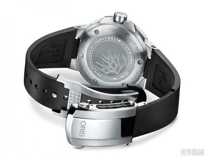 ▲腕錶的不鏽鋼實底蓋突顯其高防水性能,並鐫刻鹿角珊瑚和限量編號。
