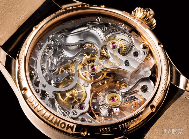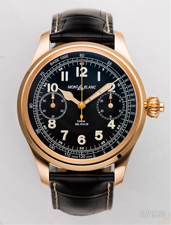 18K玫瑰金材質/MB M16.29手動上鍊機芯/時、分、小秒顯示/單按把同軸計時碼錶功能/藍寶石水晶鏡面、透明底蓋/防水30米/錶徑44mm/限量100只/參考價:NT$ 1,028,100