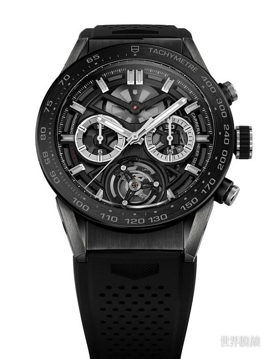 鈦金屬材質/Calibre HEUER-02T自動上鍊機芯/時、分、秒顯示/計時碼錶功能/藍寶石水晶鏡面、透明底蓋/防水100米/錶徑45mm