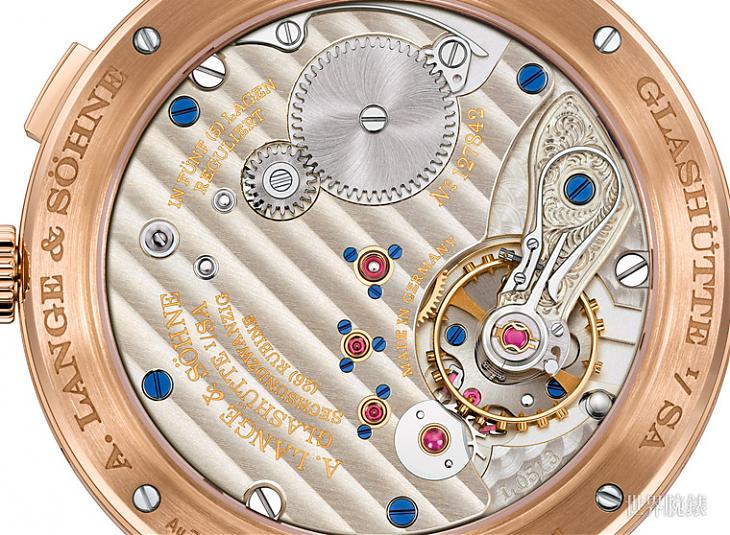 ▲錶款搭載的L051.3手上鍊機芯擁有朗格自製的擺輪游絲,規格包括3Hz震頻、26顆紅寶石軸承等,更著要的是其動力儲存具有三日鍊的水準。