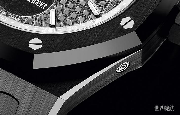 ▲在陶瓷錶殼上AP同樣施以皇家橡樹標準的表面處理,正面和側面拉上髮絲紋,倒角則作拋光,營造出存在感強烈的立體線條。