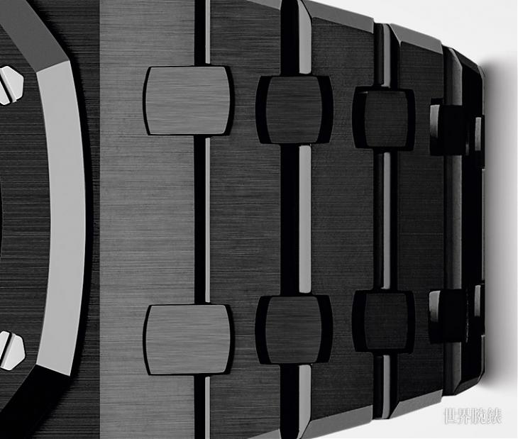 ▲依據AP的官方資料,這款的鍊帶應該是全陶瓷,並沒有另外內襯金屬件, 如此一來不但加工更難,對佩戴安全性(因碎裂而脫落)的要求也會更高。