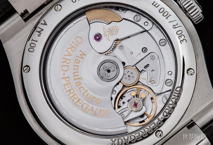 ▲從透明底蓋上可以清楚看見擺輪的精妙作動,大三針加日期的GP01800基礎機芯未來應該會在Laureato系列下更多的錶款上得見。