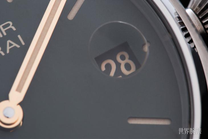▲面盤六點鐘位置的動力儲存標示成了這次與PAM00736之間最明顯的差異特徵。