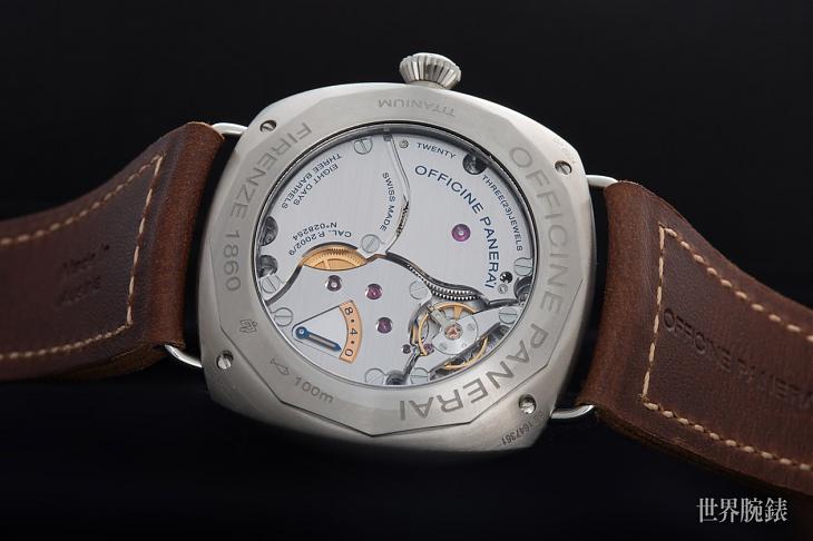 本次搭載在PAM00735腕錶中的事沛納海自製的P.2002手動上鏈機芯,也是品牌自製機芯歷史中第一枚誕生的成品,對品牌別具意義的機芯之一。P.2002最大的特色當屬八天的長儲存動力。機芯的長動力是靠三個發條盒所提供的,由兩個串連的銀色發條盒並連一個金色發條盒;除了提供更長的驅動時間,複數發條盒也有穩定扭力的作用,所以這幾年各大錶廠的新製機芯就算沒有長動力的需求,也多會選擇多發條盒的動力機構。其實P.2002的儲存動力高達十天,之所以號稱八日鍊、儲能顯示也只有八天,是為了讓使用者在還剩二天動力時便為發條上鍊,避開最後二 天扭力不足時對走時的影響。P.2002機芯更配備秒針歸零裝置,確保對時精準無 誤,時針可前後調校而不影響分針運作,防水達100米。