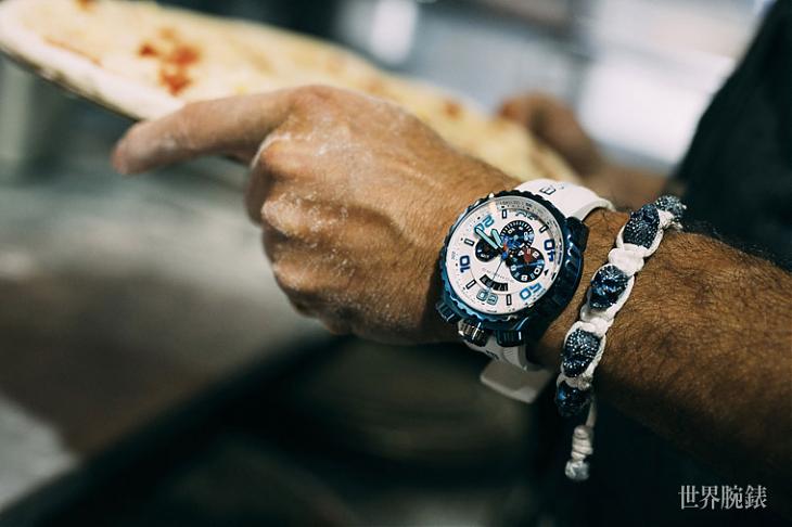 Tyler Rosso欣賞的腕錶,要有獨特的個性造型、繽紛色彩、多方位的機能性與設計感,第一眼就能令人印象深刻,然而隨著時間的增長,又能夠不斷在其中發現新的趣味。BOMBERG BOLT-68 Chroma II系列剛好符合這樣的特質。晶鑽藍霓虹計時碼錶、以及粉彩霓虹計時碼錶兩種不同款式,錶殼採用亮藍色或棕色DLC類鑽碳鍍層,硬度直逼鑽石,色彩亮麗繽紛,讓原本平凡無奇的不鏽鋼材質彷彿一下子亮麗了起來,面盤及錶帶上的時標數字及英文字母,也特別採用對比鮮明的色彩做出醒目搭配,為原本造型就已經非常前衛的BOLT-68添加了更突出的普普藝術風格。