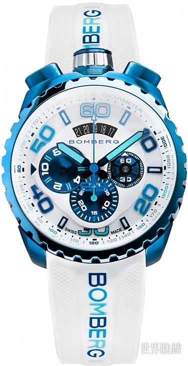 亮藍色DLC不鏽鋼材質/石英機芯/時、分、小秒、日期顯示/計時碼錶功能/藍寶石水晶鏡面/防水100米/錶徑45mm