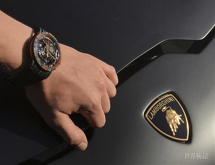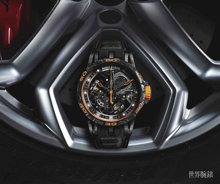 ▲羅杰杜彼和LAMBORGHINI首度攜手合作,推出以超跑為設計靈感聯名錶款——Excalibur Aventador S腕錶。