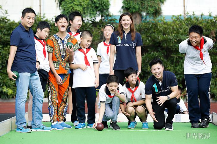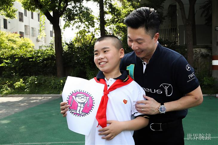 ▲中國體操界巨星李小鵬造訪靜安啟慧特殊教育學校,祝賀特奧運動員侯燁小朋友的畫作被選為IWC第十一款勞倫斯特別版腕錶的特製圖案。