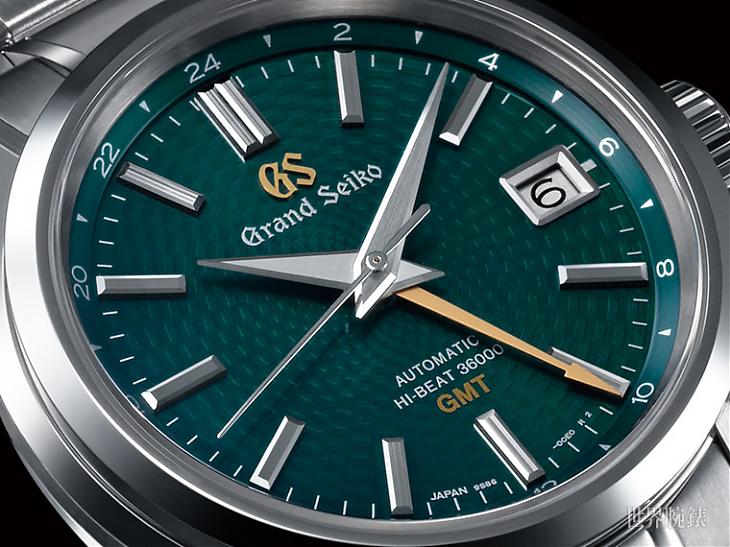 ▲面盤上的諸多細節,例如綠面新採用的孔雀尾巴裝飾紋、GS標誌上移到取代SEIKO標誌,加上24小時刻度變為銀白色等,都透露出新版的改造線索。
