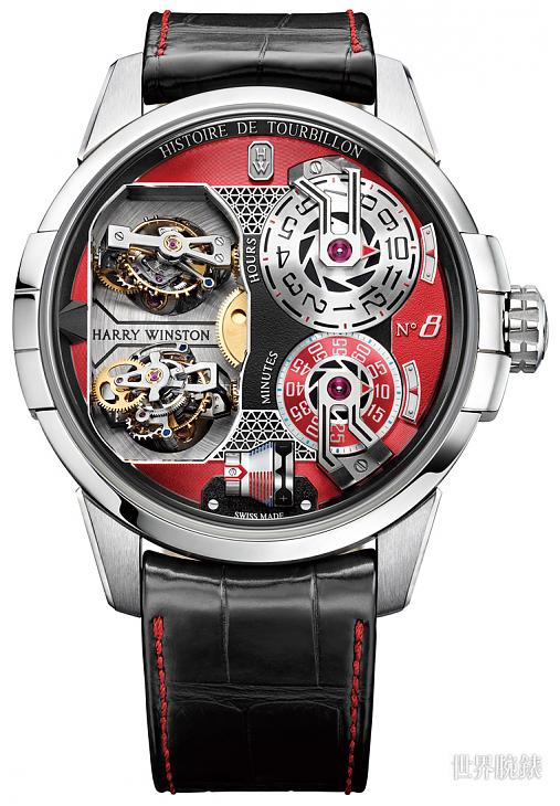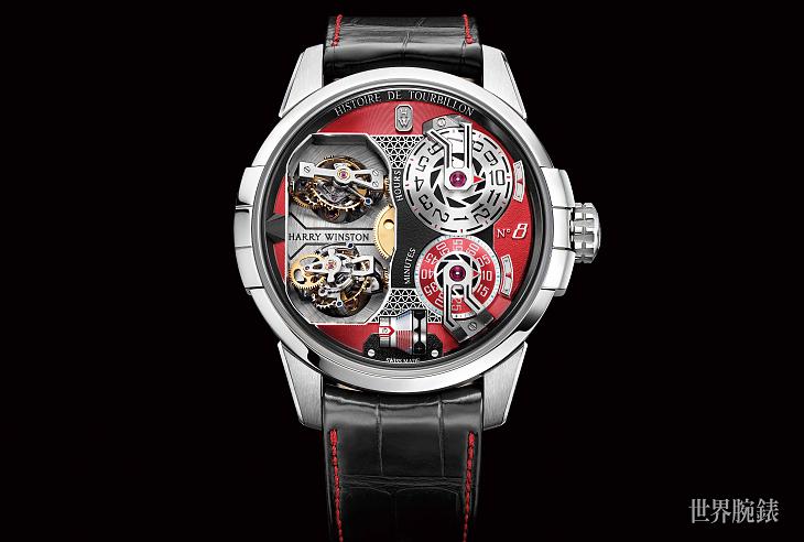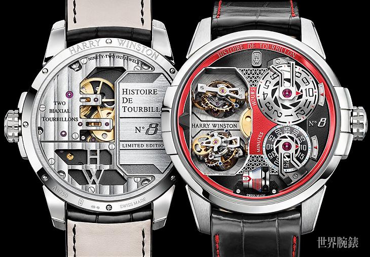海瑞溫斯頓2017年繼續探索精密陀飛輪腕錶的世界,推出新款Histoire de Tourbillon 8 號腕錶。繼承前代作品,新款亦配備雙軸陀飛輪,在佔據腕錶一半體積的開闊空間中,兩個大型陀飛輪框架旋轉不息。