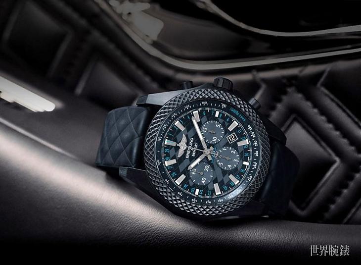 這款錶採用百年靈近兩年研發有成的Breitlight®材質,除了霧黑色性格外觀之外,它的輕量性、抗刮、抗腐蝕能力以及親膚性都更為理想。錶款名為“Dark Sapphire”並非錶殼材質使用藍寶石製成,百年靈想要表現得其實是源自第三代Continental GT的深藍色車身,因此這個色調遂展現在腕錶的面盤上。面盤尚可見菱形裝飾圖案,如果有Follow第三代Continental GT,很直覺就能聯想到這是由車款的內飾移植而來,錶款本身的計時功能搭配面盤外側的流速計刻度,儼然又是一枚以跑車儀表為靈感的設計。此外錶款配置的橡膠錶帶上也有菱形紋路,一方面呼應面盤紋路,同時它也有幾分Continental GT座椅的味道,在賓利系列中顯得更有特色。