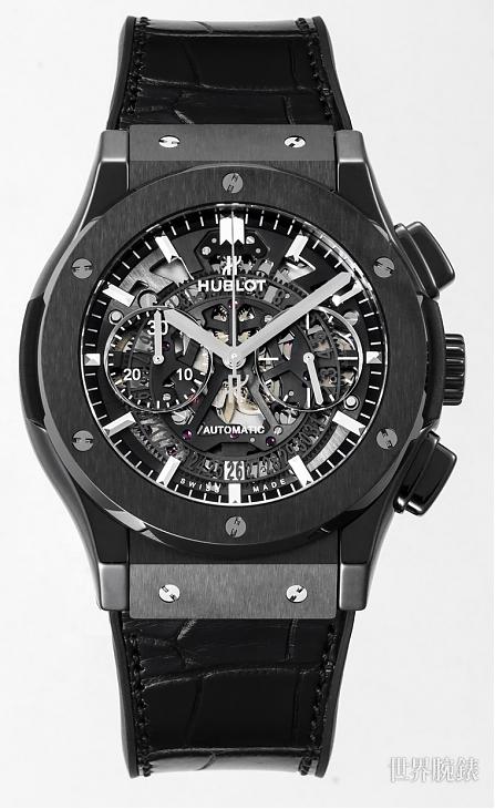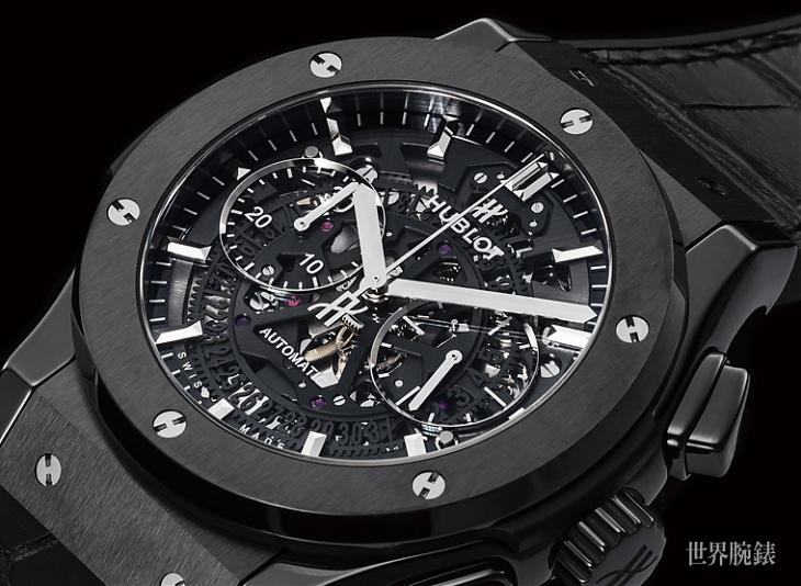 陶瓷材質/HUB 1155 "Aero"自動上鍊機芯/時、分、小秒、日期顯示/計時碼錶功能/藍寶石水晶鏡面、透明底蓋/防水50米/錶徑45mm/參考價:NT$ 549,000
