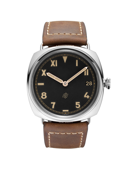 1936年,PANERAI創制了Radiomir手錶以供義大利皇家海軍突擊隊員使用。這兩個全新Radiomir錶款直接沿用其原型錶款的眾多特點:47毫米直徑的精鋼枕形表殼、修長的線型錶耳、圓錐形錶冠以及精煉、簡約的錶盤,即使在光線極其微弱的條件下也能清晰辯讀時間。他們的不同之處在於錶盤設計。 PANERAI Radiomir California 3 Days 3日動力儲存手錶採用的是Radiomir錶殼的首款錶盤設計,時標、阿拉伯數字與羅馬數字交替呈現。現在更加入OP標誌、鐫刻於外緣12點鐘位置上的“CALIFORNIA”字樣和3點鐘位置上的日期小視窗,令錶盤整體設計更加突出。