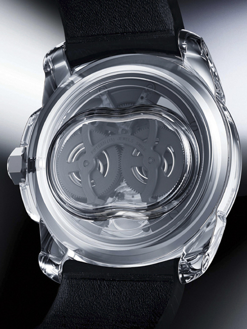 為了避免平衡輪的震動受到空氣阻力的干擾,一體成型的透明Ceramyst TM錶殼內部為真空,採用以奈米顆粒處理的防水膠圈確保錶殼的密閉性。