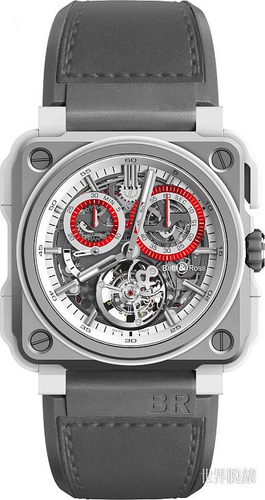 鈦、陶瓷材質/BR-CAL.283手動上鍊機芯/時、分顯示/陀飛輪裝置/計時碼錶功能/動力儲存顯示/藍寶石水晶鏡面/防水100米/錶徑45mm/限量20只/參考價:NT$ 5,780,000