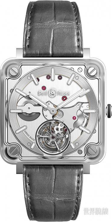 藍寶石水晶、不鏽鋼材質/BR-CAL.380自動上鍊機芯/時、分、小秒顯示/陀飛輪裝置/藍寶石水晶鏡面、透明底蓋/防水50米/錶徑42.5mm/限量99只/參考價:NT$ 2,200,000