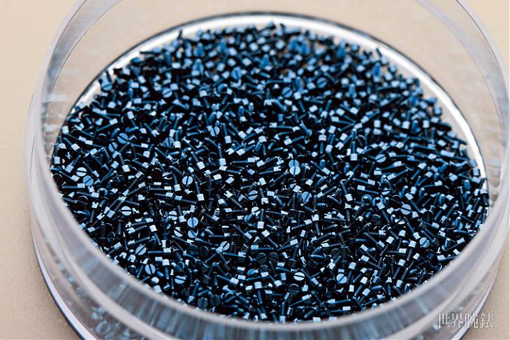 ▲在藍化處理的工序當中,必須小心地將不鏽鋼螺絲緩慢地加熱至300°C,螺絲的金屬表面才會產生一層超薄的菊藍色閃亮磁鐵礦。