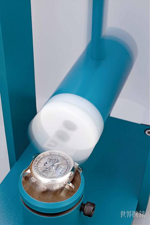 ▲利用朗格自身開發出的軌道式上鍊器,可以模擬一般日常生活中腕錶可能因撞擊而發生的狀況,以此避免更多的失誤發生。