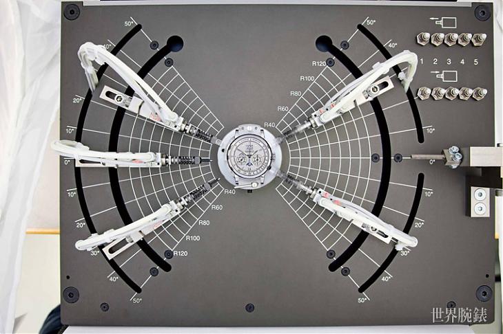 ▲在實驗室中有多重撞擊測試,其中此機具主要使用於原型腕錶掉落地面後,再以腕錶重量的5,000倍進行撞擊。