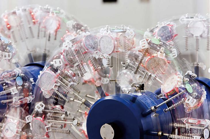 ▲將大日期顯示裝置的調校按把按下36,525次,讓腕錶日期向前推進100年。並以特別的氣候空間模擬不同的氣候區以測耐用性。