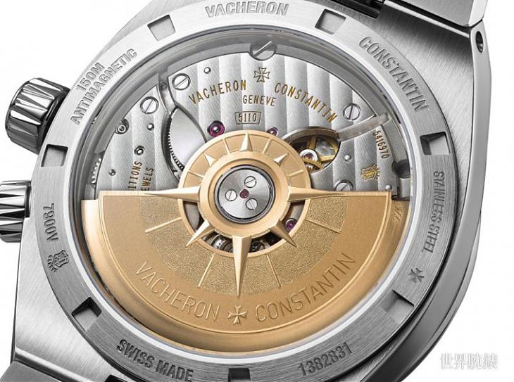 新款Overseas Dual Time搭載的是5110 DT機芯,規格包括37顆紅寶石、28,800vph震頻,動力儲存則有60小時,22K金自動盤上面飾有風向玫瑰圖案,延續5000系機芯的傳統,這款同樣也獲得日內瓦印記認證。錶款面盤的指示功能包括6點方向的指針式日期顯示、9點方向的日夜顯示,以及以中軸第四根針指示的兩地時間。其中日期顯示與所在地時間同步運行,可以藉由四點方向的按把進行快調。