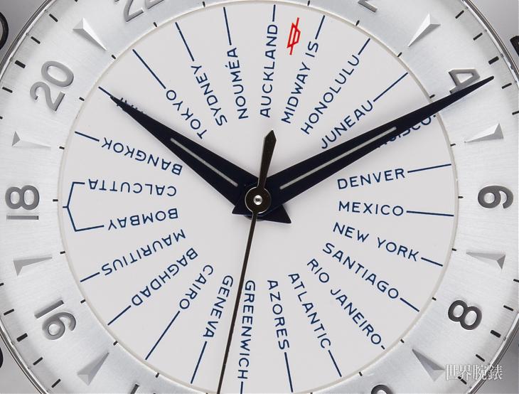 至於錶款完全移植的不變經典,則可以在面盤六點鐘位置的復古品牌標誌上可見,加上Auckland和Midway Island之間的國際換日線紅色Logo,更增添不少古典味道,原有的阿拉伯數字時標和倒三角形的刻度,更可證明新款不但不失經典DNA,還在原有的懷舊面貌上添入更進一步的精準性能。