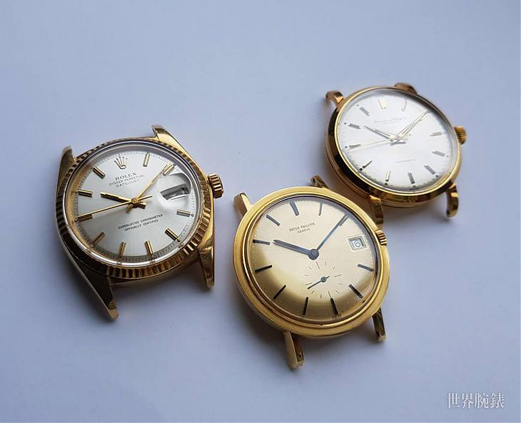 圖左至右為ROLEX 1601、PP的3541(當年有多個型號)與IWC的666(有多個型號),均為18K金材質。分別搭載1570、27-460與853機芯,是全世界最優的三大名機。