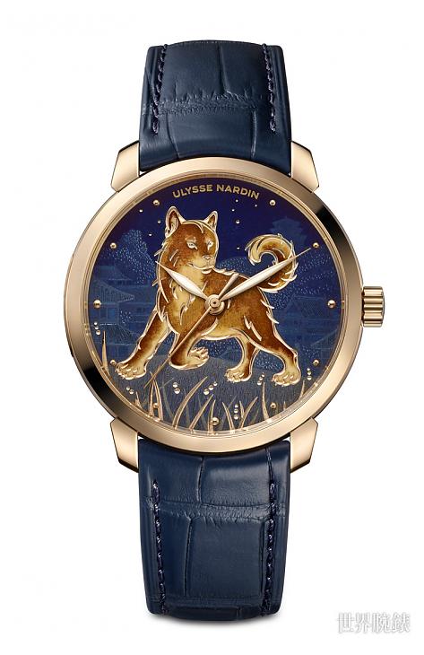 鎏金腕錶系列包含一系列的原創琺瑯作品,深受許腕錶收藏家喜愛和收藏。2018的農曆年將於2月開始,雅典錶推出限量88只的戊戌狗年新作《鎏金戌犬腕錶》,選用18K玫瑰金錶殼。搭載瑞士官方天文台認證的UN-815自動上鍊機芯,備有42小時動力儲存,直徑為40毫米。獨一無二的大明火內填琺瑯腕錶,防水達50米,配以優雅大方的鱷魚皮真皮錶帶。