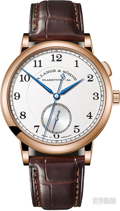 1815 "Homage to Walter Lange"掌握兩大計時功能。在6時位置的小錶盤上,小秒針每格刻度推進6步,這同時代表著每小時21,600次的震頻。藍鋼中央秒針則每秒精確跳動一次,並可依照需要連續運行或固定不動。設於2時位置的按把可啟動並掣停秒針。這對於心跳率測量尤其實用。