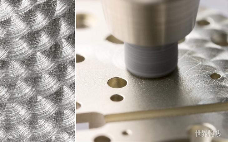 較小的齒輪飾有圓飾。將部件在砂紙上滾碾即會形成規律的環形輪廓。