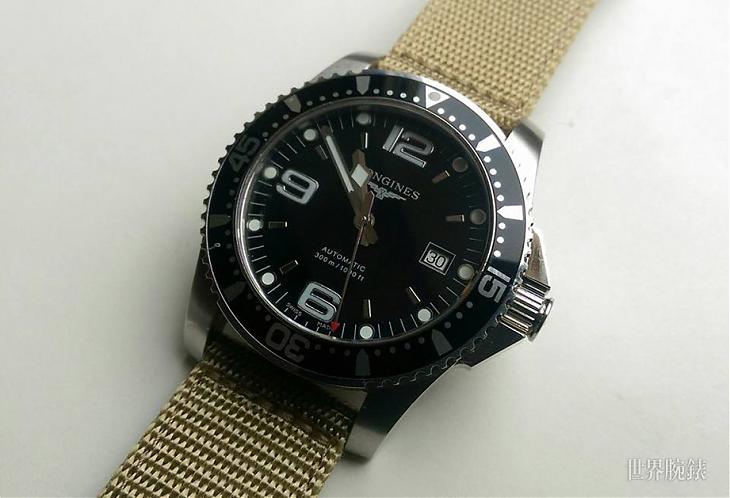 浪琴的Hydro Conquest有良好的品質與一顆耐操的L633 ETA 2824心臟,經調校後ㄧ天誤差1秒鐘,夠精準了,非常超值,好錶一只。上圖是我將鍊帶更換為尼龍帶後,感覺有一點軍錶的Fu,是我平日的佩錶之一。