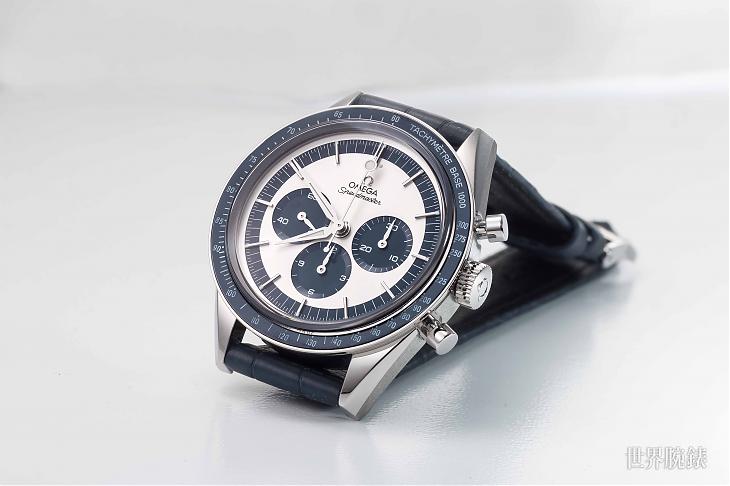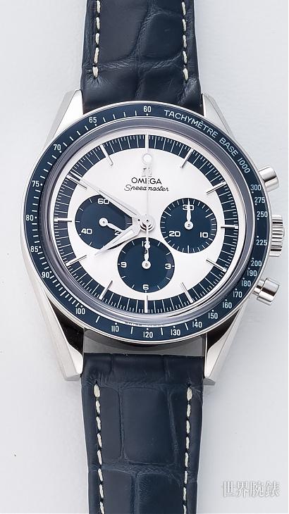 比較2016年這版和2012年的版本,新版有幾個明顯比較討喜的地方,首先它的配色採用了雙色面盤,三個子面盤和外圈刻度都採用了跟銀白色主面盤對比的藍色,搶眼之餘也更復古;這樣的配色比較接近賽車錶的風格,事實上超霸在以登月聞名之前原始的定位就是車賽用錶,這次的復刻也算是回歸初衷,而OMEGA這次在官方的宣傳中也不再特別強調它的太空淵源了,畢竟CK2998是從1959年開始販售的,當時OMEGA跟太空也還無甚淵源。
