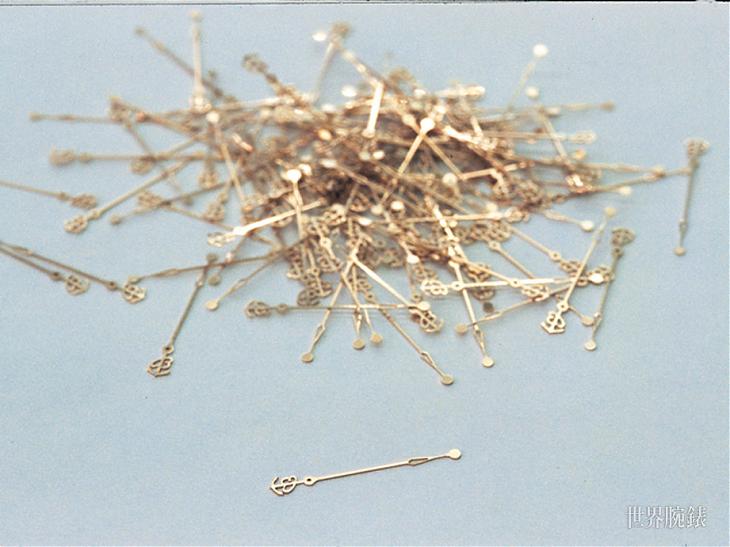 最後,指針還需經過數道不同的電鍍工序:浸析、除油污、預鍍銠與鍍銠(或鍍金),以及數次漂洗。最後,把夜光物質塗覆在指針上,再進行全面的目視檢測,指針製作便大功告成。