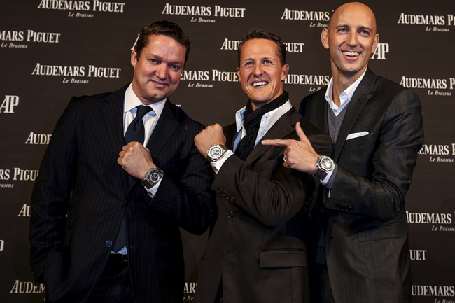 ▲ 左起嘉賓Axel Felmi ,AUDEMARS PIGUET品牌形象大使麥可.舒馬克和AUDEMARS PIGUET市場營銷總監Tim Sayler合影