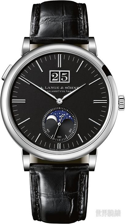 ▲朗格全新Saxonia Moon Phase,將過去的白色面盤改成了黑色面盤,簡潔的設計中又更加霸氣。