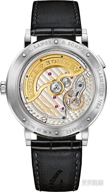 ▲從透明底蓋中可以一覽朗格自製L086.5機芯,細緻的機芯細節展現朗格製錶的嚴謹。